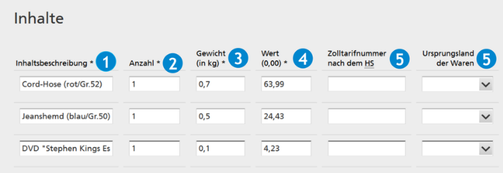 Zollinhaltserklärung Beispiel DHL online ausfüllen