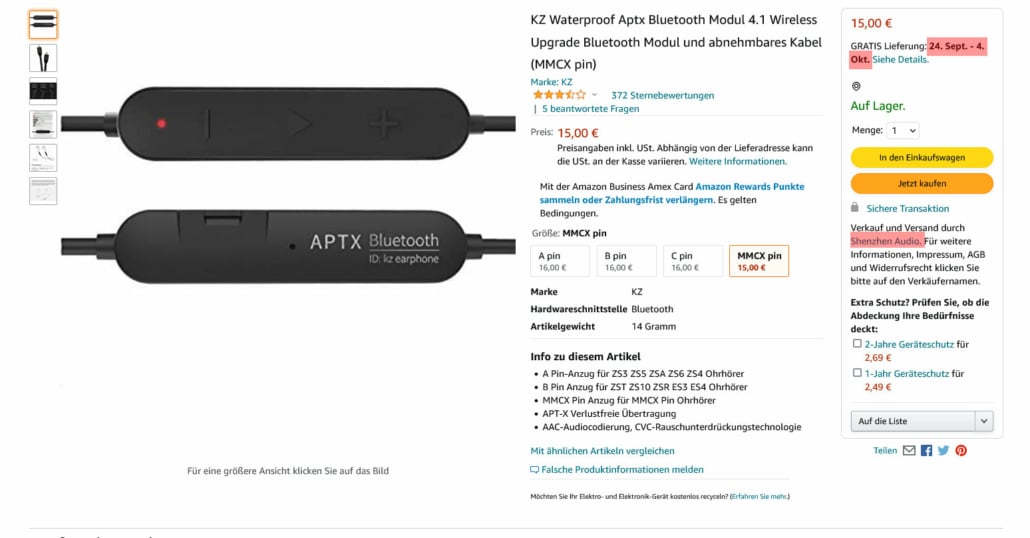 Wo ein Artikel herkommt, ist nicht immer gleich erkennbar. So steht zwar unter dem „Jetzt kaufen“-Button, wer verkauft, aber nicht woher die Ware dann kommt. (Siehe Beispielbild)