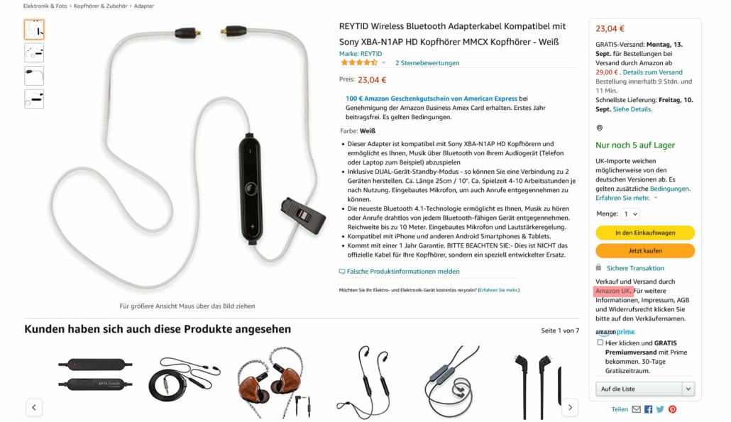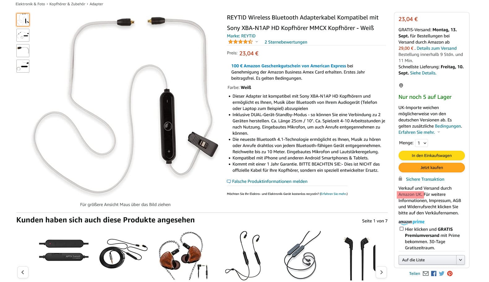 Natürlich lässt sich, wenn an dieser Stelle Amazon UK als Verkäufer steht, ahnen, dass der Artikel aus Großbritannien kommt. Doch mal ehrlich, gerade wenn wir es eilige haben, schauen wir kaum auf die Angabe, wer der Verkäufer ist. So ist schnell ein Artikel im Vereinigten Königreich bestellt. Aber ist das eigentlich ein Problem?
