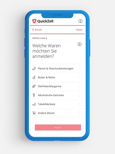 Du bist hier: Startseite1 / Test2 / Freimengen am Schweizer Zoll: Alkohol, Tabak & Lebensmittel3 / Die Quick-Zoll-App des Schweizer Zolls