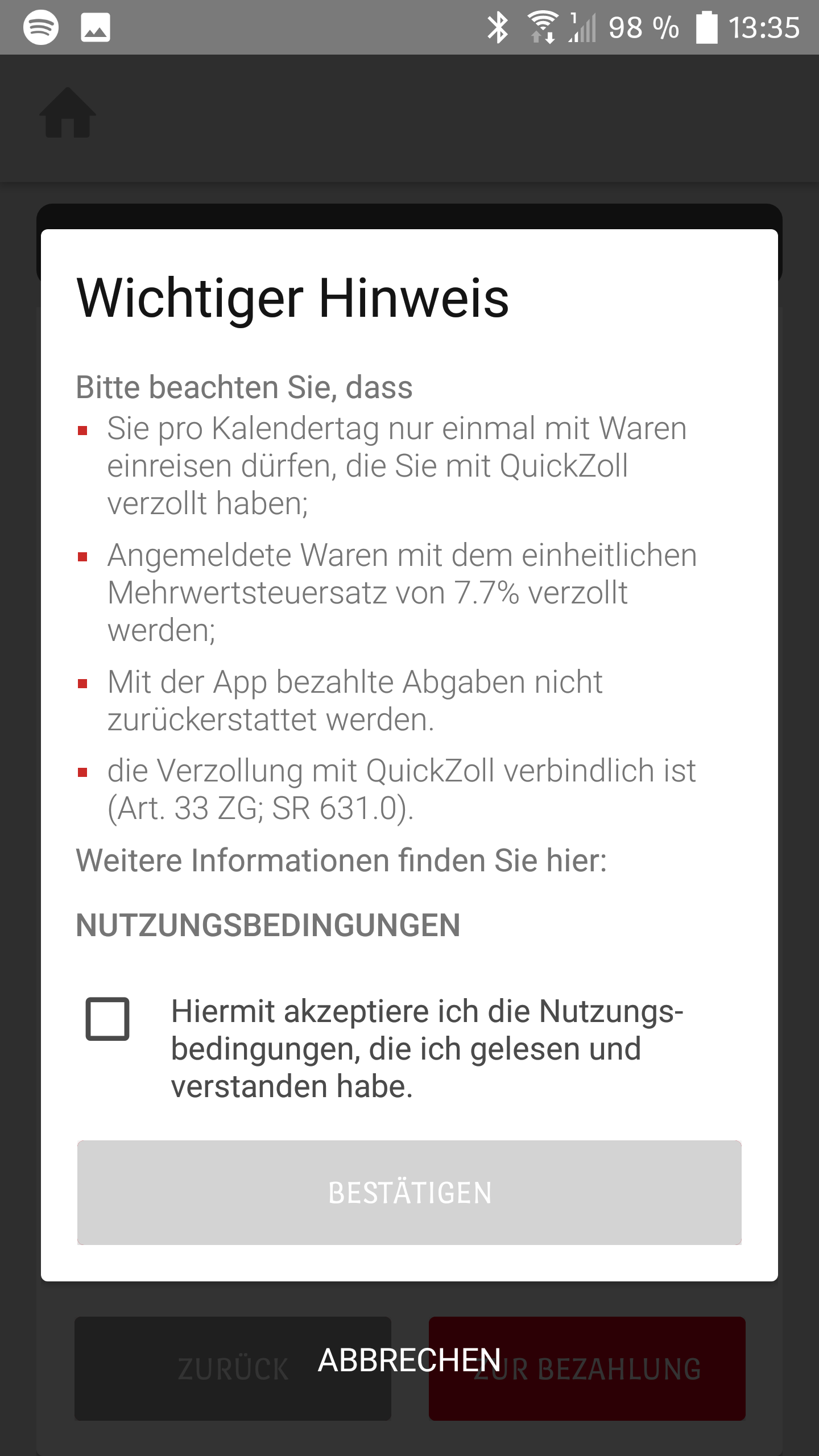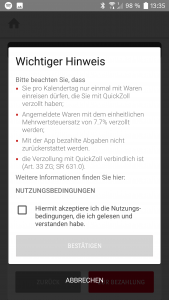 QuickZoll-App Wichtiger Hinweis zum Mehrwertsteuersatz
