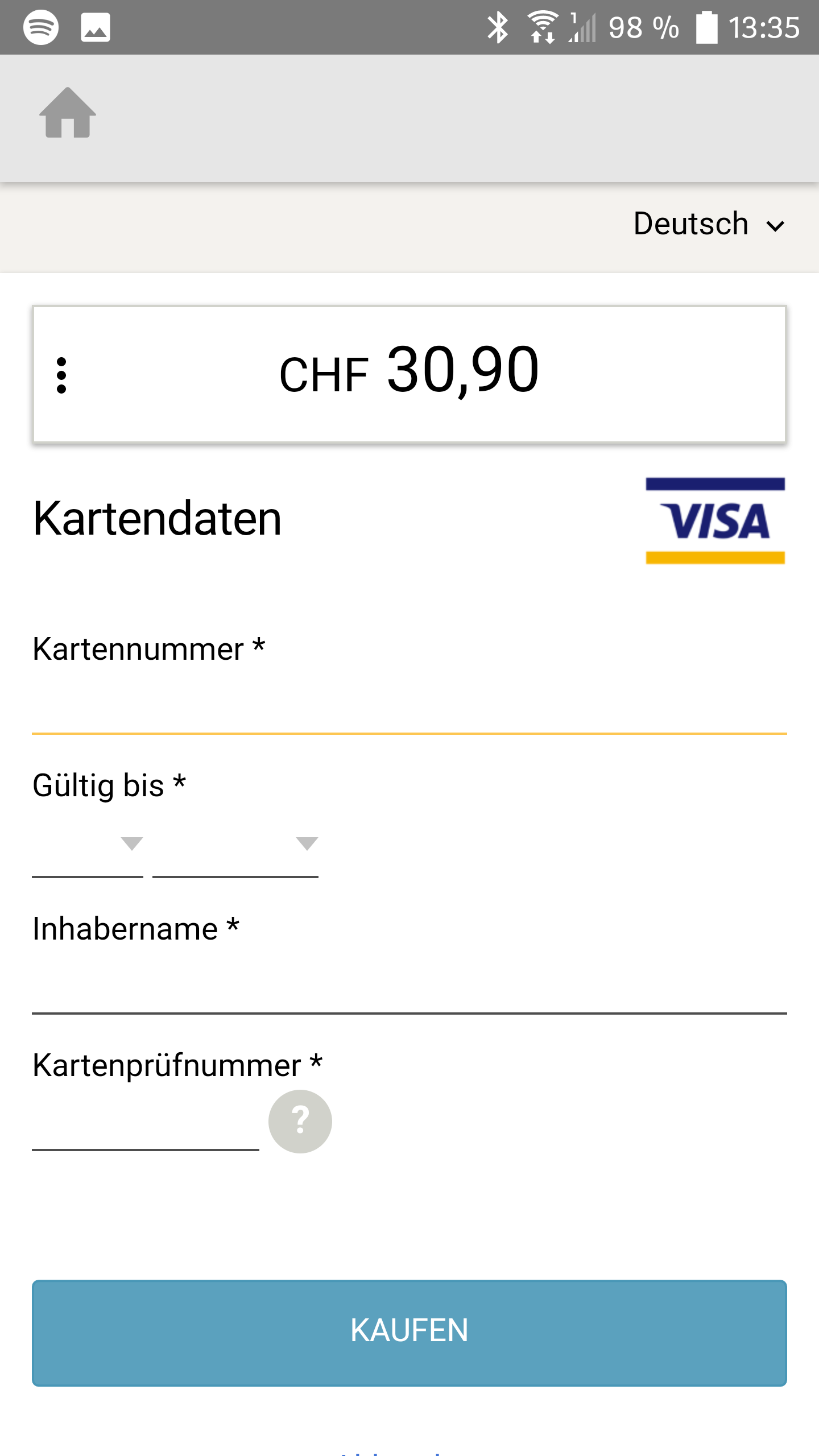 Du bist hier: Startseite1 / Test2 / Mit dem Smartphone verzollen: So nutzen Sie die QuickZoll-App (inkl. Videotutorial)3 / QuickZoll-App Kreditkartendaten eingeben