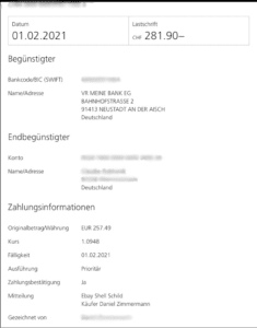 Screenshot-Zahlungsbeleg